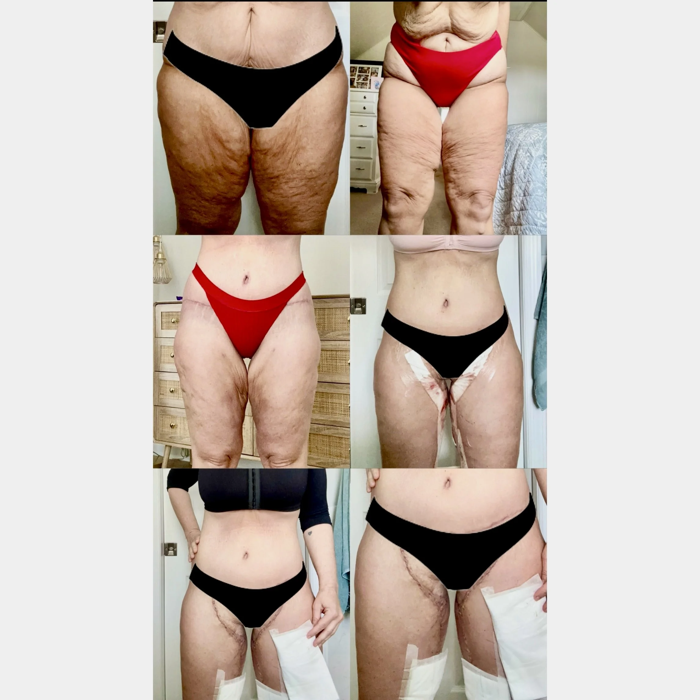 What followed on March 18th 2026 was the final surgery— a thigh lift. Quite possibly the scariest of all for me, since the story of my thighs was long and labored. Oh, they were heavy— weighted with words and sores. Thunder thighs, a haunting playground chant. They were large, proportionate to my body, round and carried all 320 pounds of me at my highest weight. When I was heavy they made my knees buckle, but I still walked when and where I had to. Summer days were often spent covering them with men’s shorts, while evenings were spent crying because they chafed so badly I would get boils that became infected.