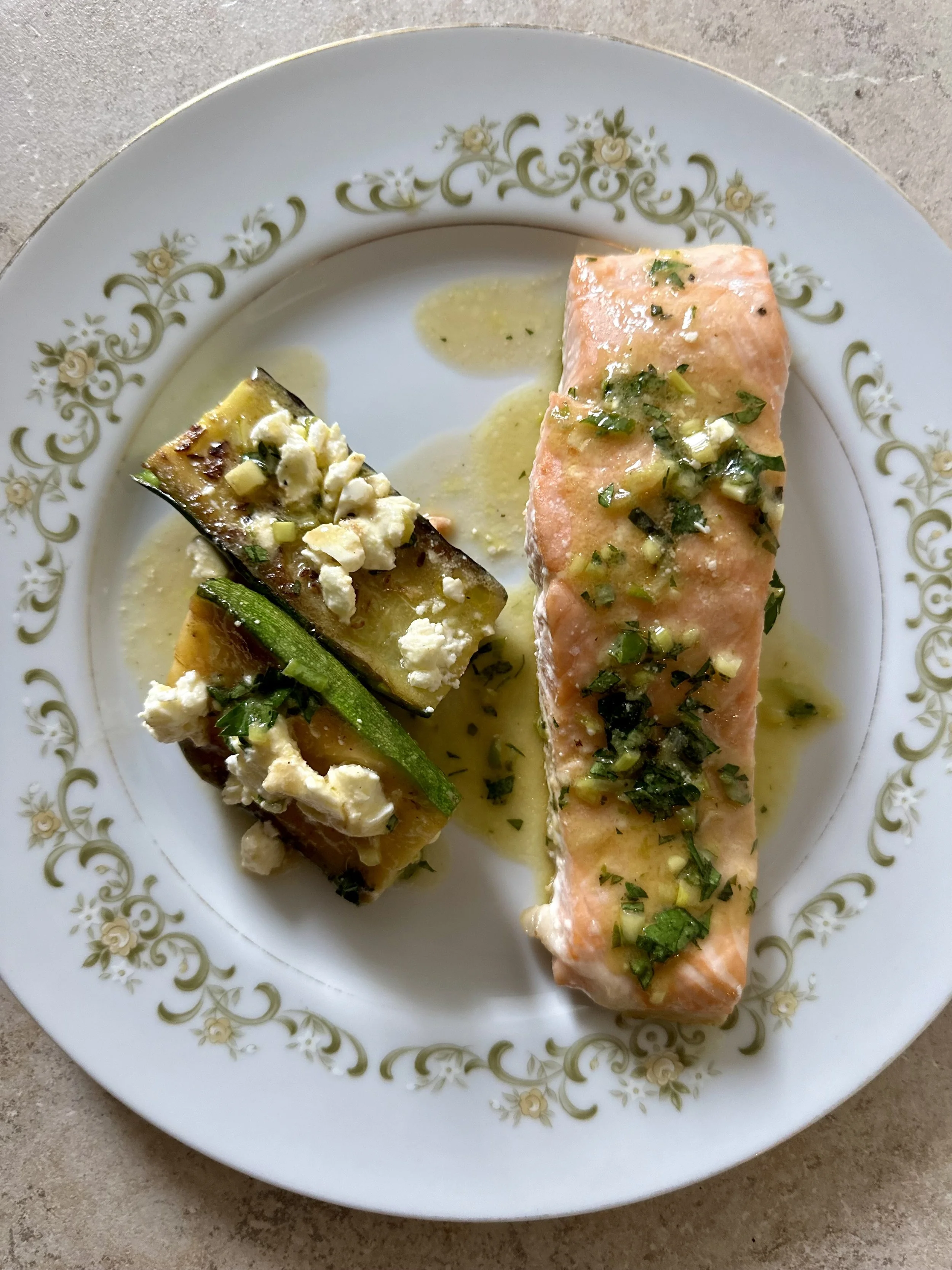 Last summer I loved pan searing zucchini whole and serving them with whipped lemon ricotta and feta, but this season I’m finding myself drawn to combinations of sweet and savory flavors, the use of a lot more herbs and a lot of garlic — of course.