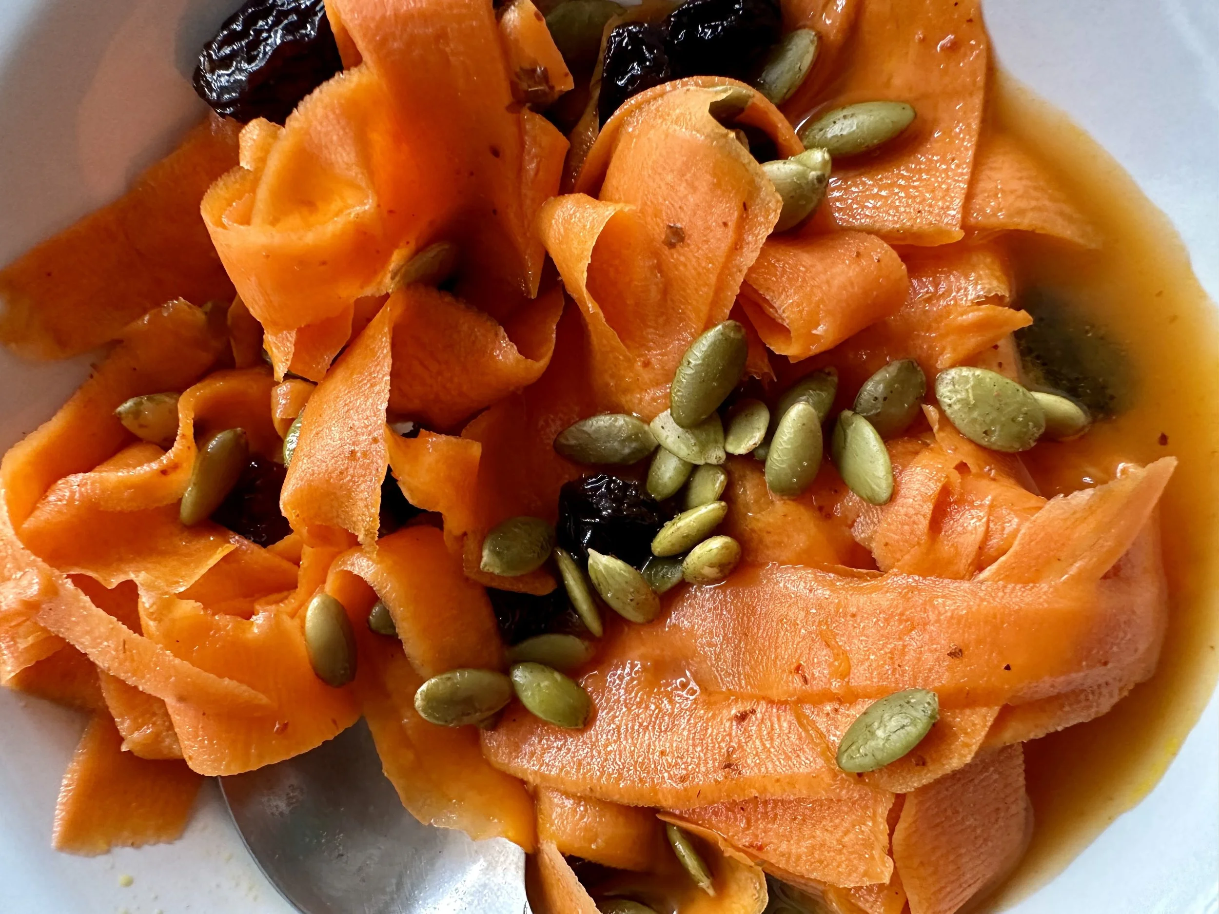 -1-2 large carrots, sliced into ribbons with the peeler (peel the first layer of skin and discard)