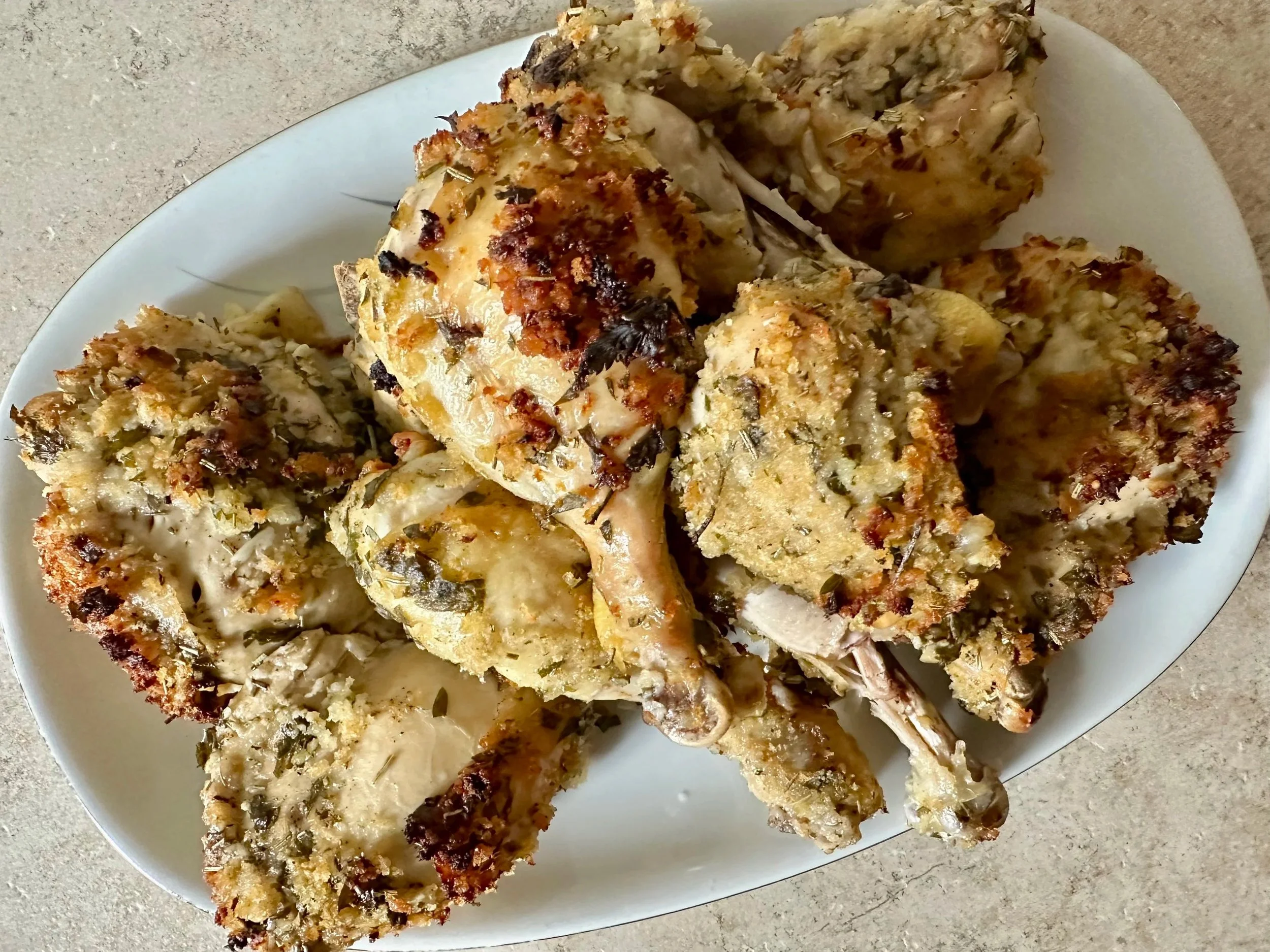 The way grandma prepared chicken thighs and legs was unparalleled to anyone else. She had a gift for flavor, using herbs and acid to their maximum capacity, salting to a tee and serving the meal so carelessly that it was charming — oil dripping on the plate, loose breadcrumbs strewn on the table — not the neatest cook, but by far the best.